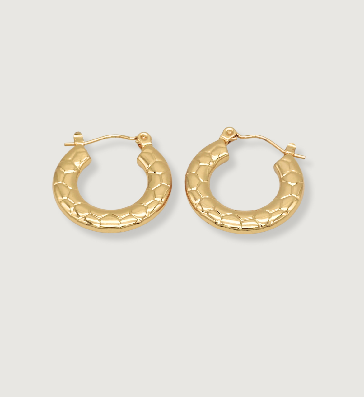 The JuliPeri Sculpted Round Hoop Earrings offer a stunning combination of classic and modern elements. With a distinctive sculpted finish that resembles a honeycomb pattern, these hoops provide texture and depth, ensuring you stand out in any crowd. They are perfect for elevating both casual and formal outfits.